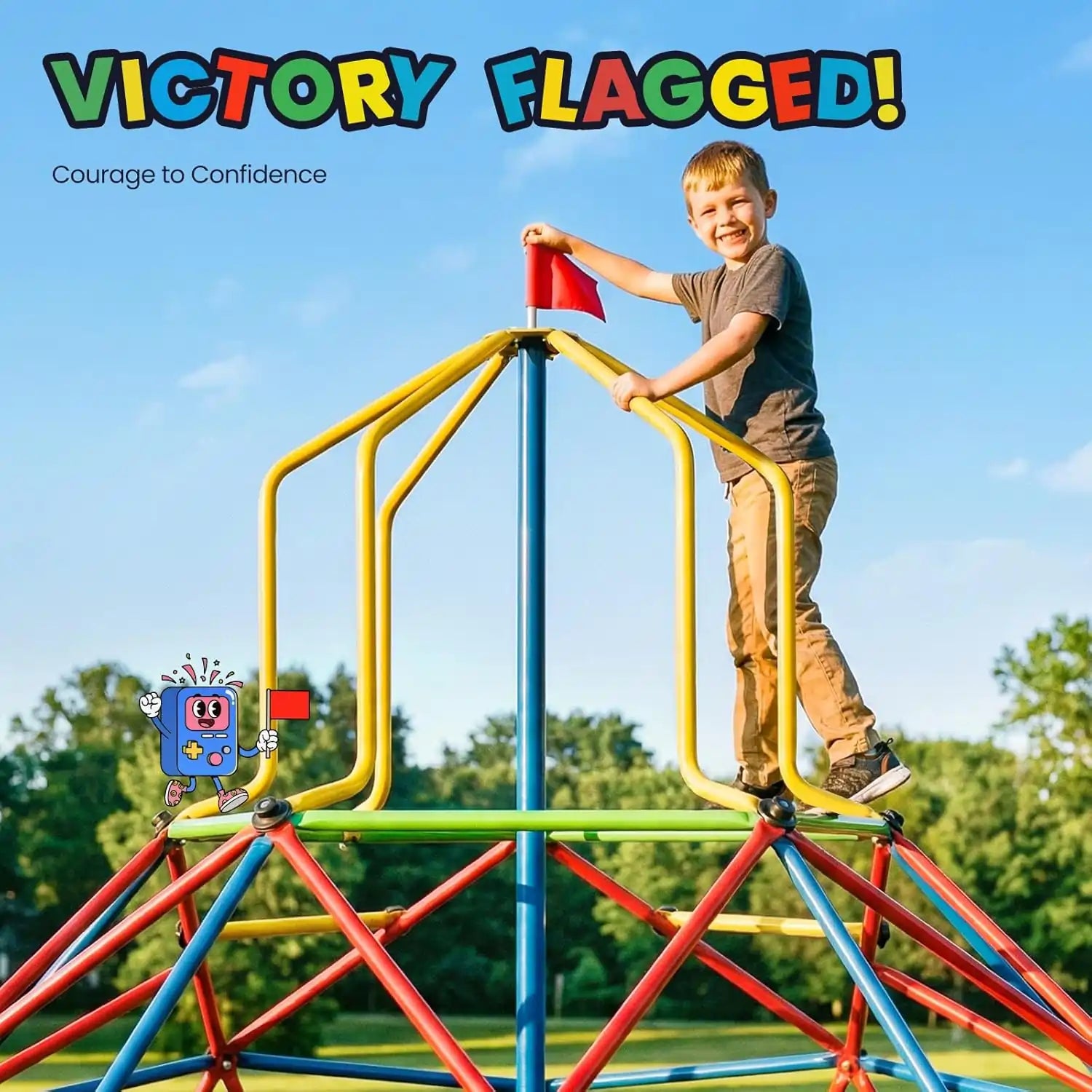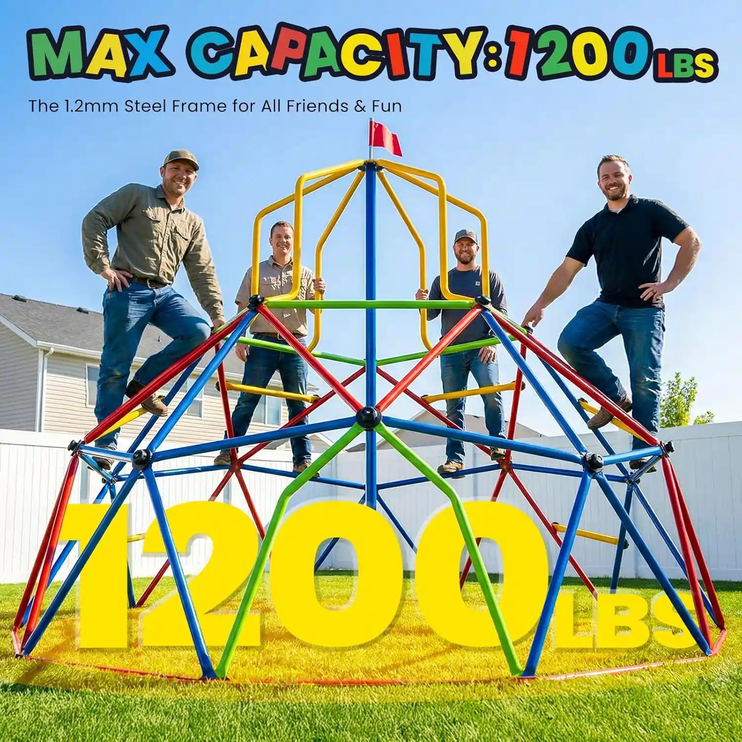 【Patented Multi-Stage Adventure Design】Features a newly patented climbing structure with progressive challenge stages: Climb, Conquer, Victory, Escape, and Safety Exit. This innovative layout delivers continuous fun and skill development, keeping kids engaged for hours.【Max Capacity: 1200LBS】Built with 1.2mm hot-dip galvanized steel tubing, ASTM & CPC certified. Supports up to 1200 lbs and resists rust year-round. Reinforced top frame ensures a fortress-like stability for worry-free outdoor play.