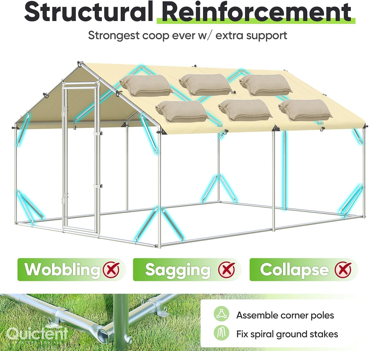 [Elite Series: Enhanced Reinforced Frame] - This structure features extra-reinforced galvanized poles and 12 support bars for max stability. Built to withstand winds and snow, this rust-resistant enclosure provides a secure, long-lasting home for your poultry in any outdoor farm or backyard environment.