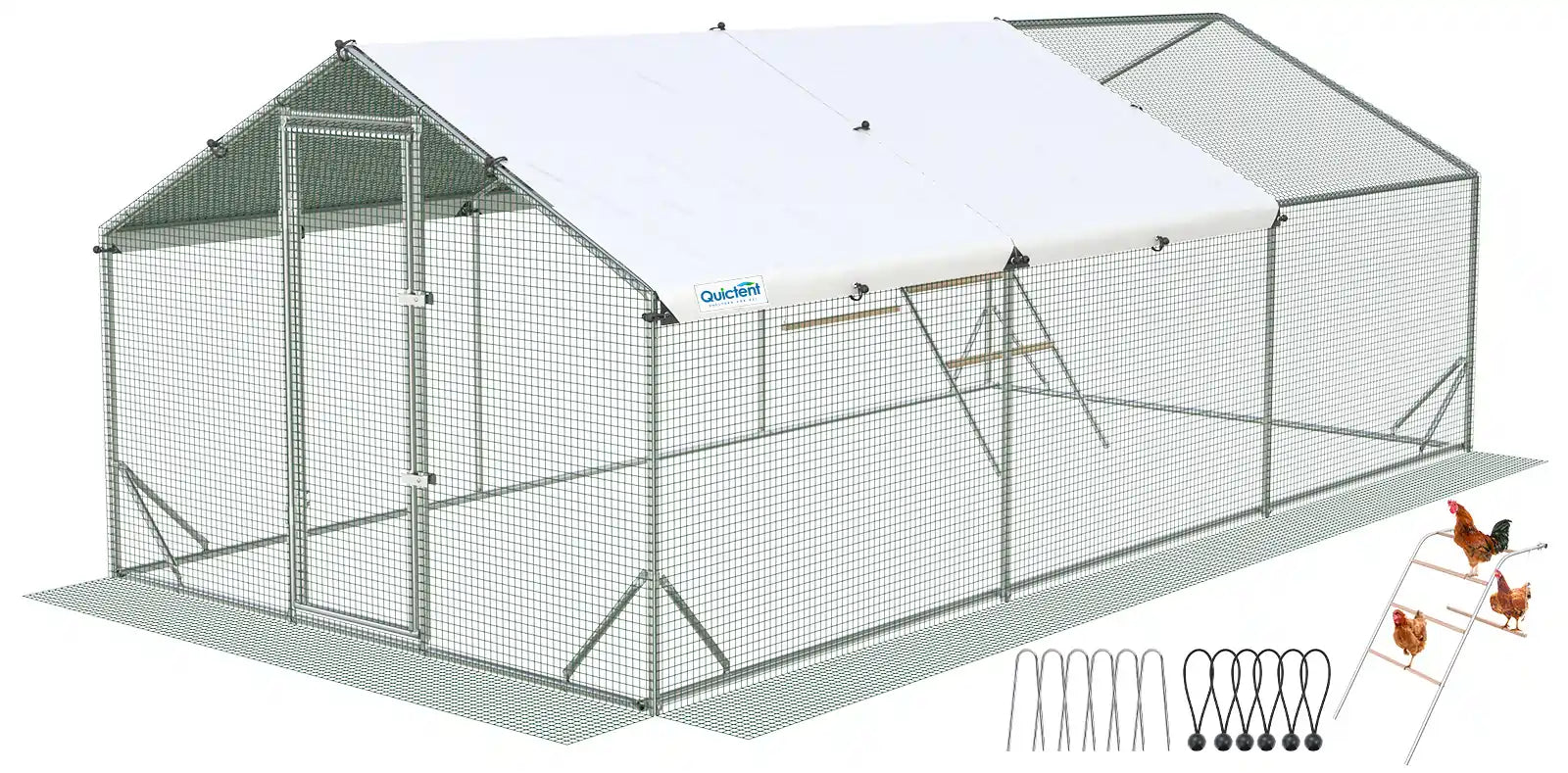 Quictent Advanced Series 18x9x6.6ft Metal Chicken Coop Run with Climbing Ladder, Walk-in Outdoor Poultry Cage Heavy Duty Predator Proof Hen Duck Rabbit Farm House, Waterproof Anti-UV Cover