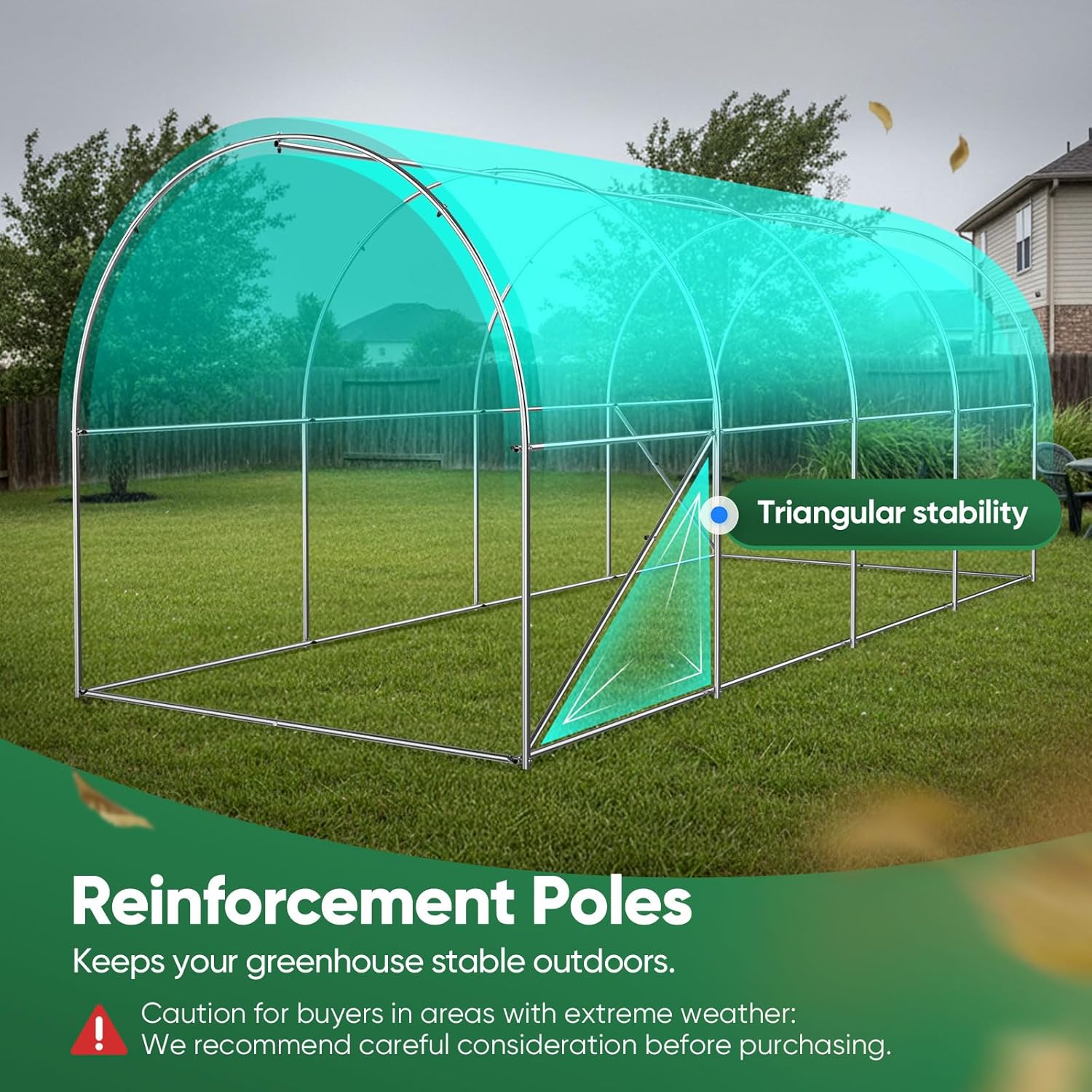 - Effortless setup meets ample space in this 15FT greenhouse. Experience the convenience of easy installation while enjoying a generously sized interior. Grow your garden with ease in a space that combines practicality and roominess.