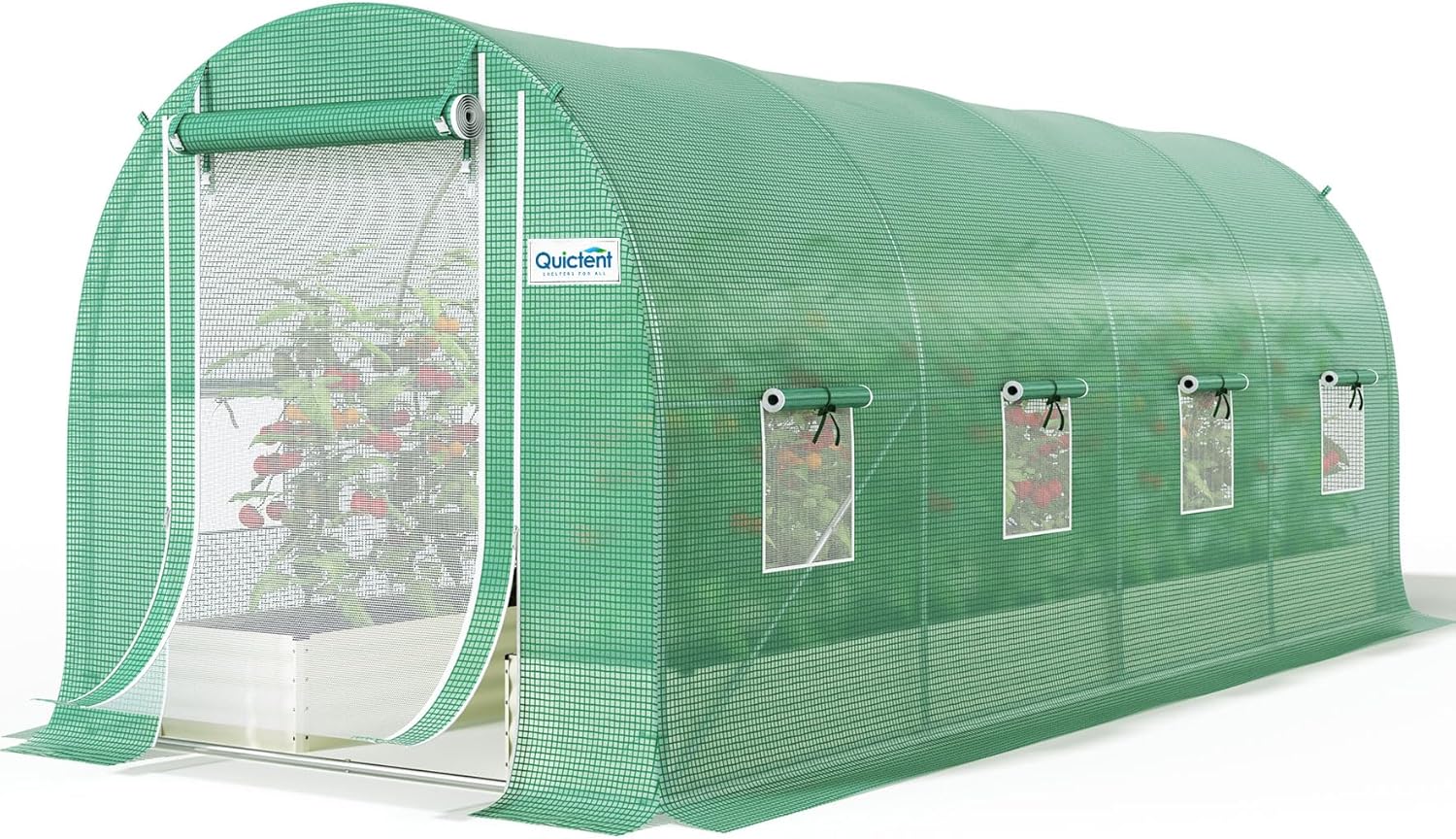 Quictent Premium Greenhouse for Outdoors, 15x7x7 FT Portable Walk-in Heavy Duty Frame Large Garden Plant Hot Outside Hoop House, 6 Ventilated Screen Window and Zipper Screen Door, Green