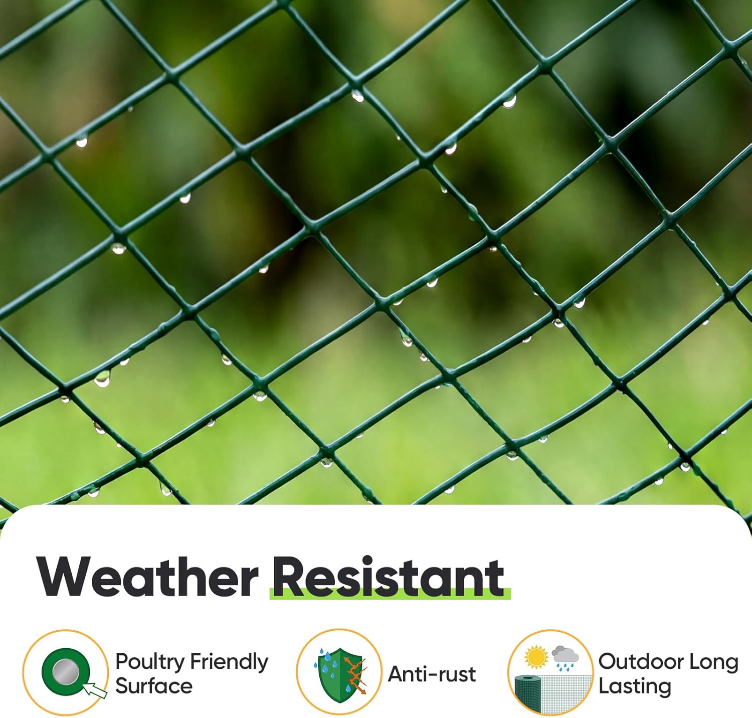 Crafted from 20 Gauge galvanized steel with a high-quality Dark Green Vinyl Coating. This double-layer protection ensures superior rust resistance and a longer life than standard chicken wire fencing.