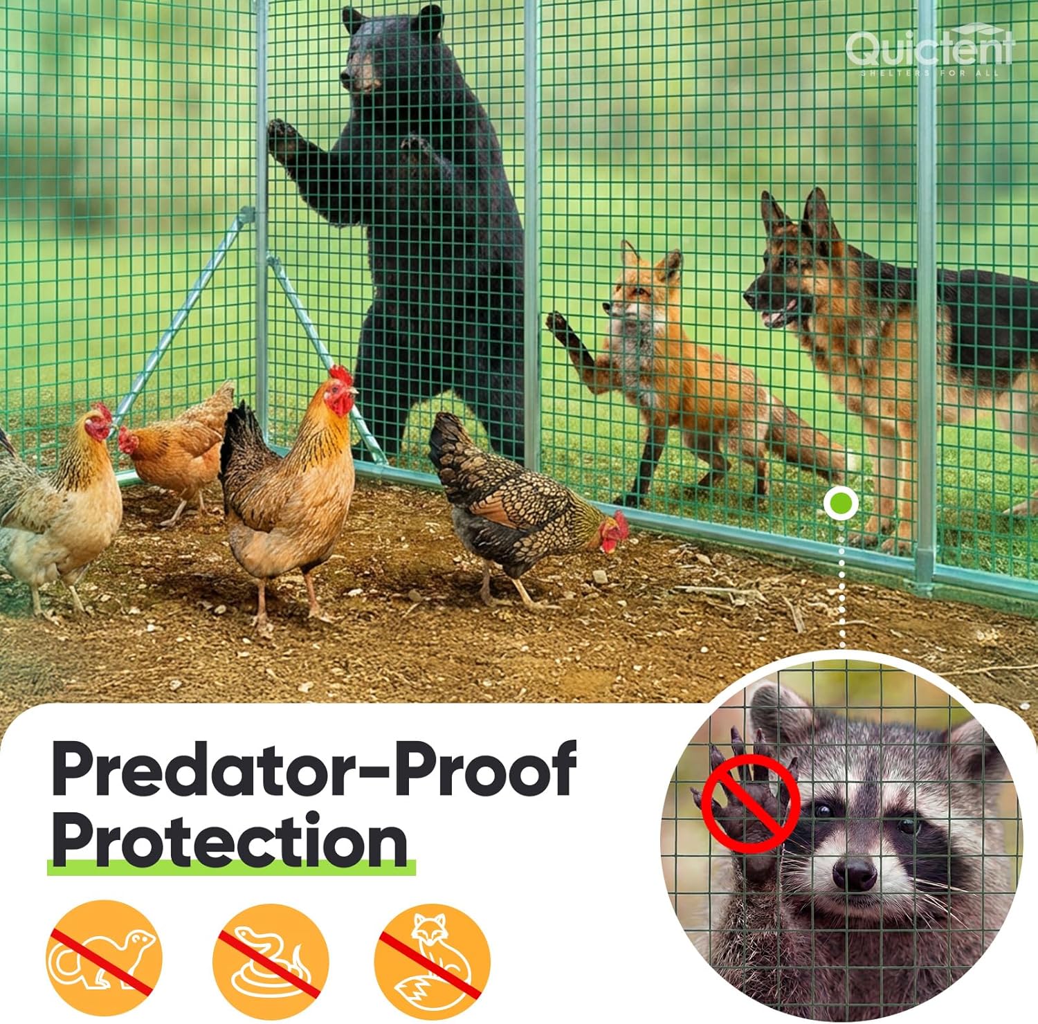 As part of the Quictent ecosystem, this hardware cloth works perfectly with our Professional Covers. Combine them for 360° protection, keeping your hens safe from both predators and the elements.
