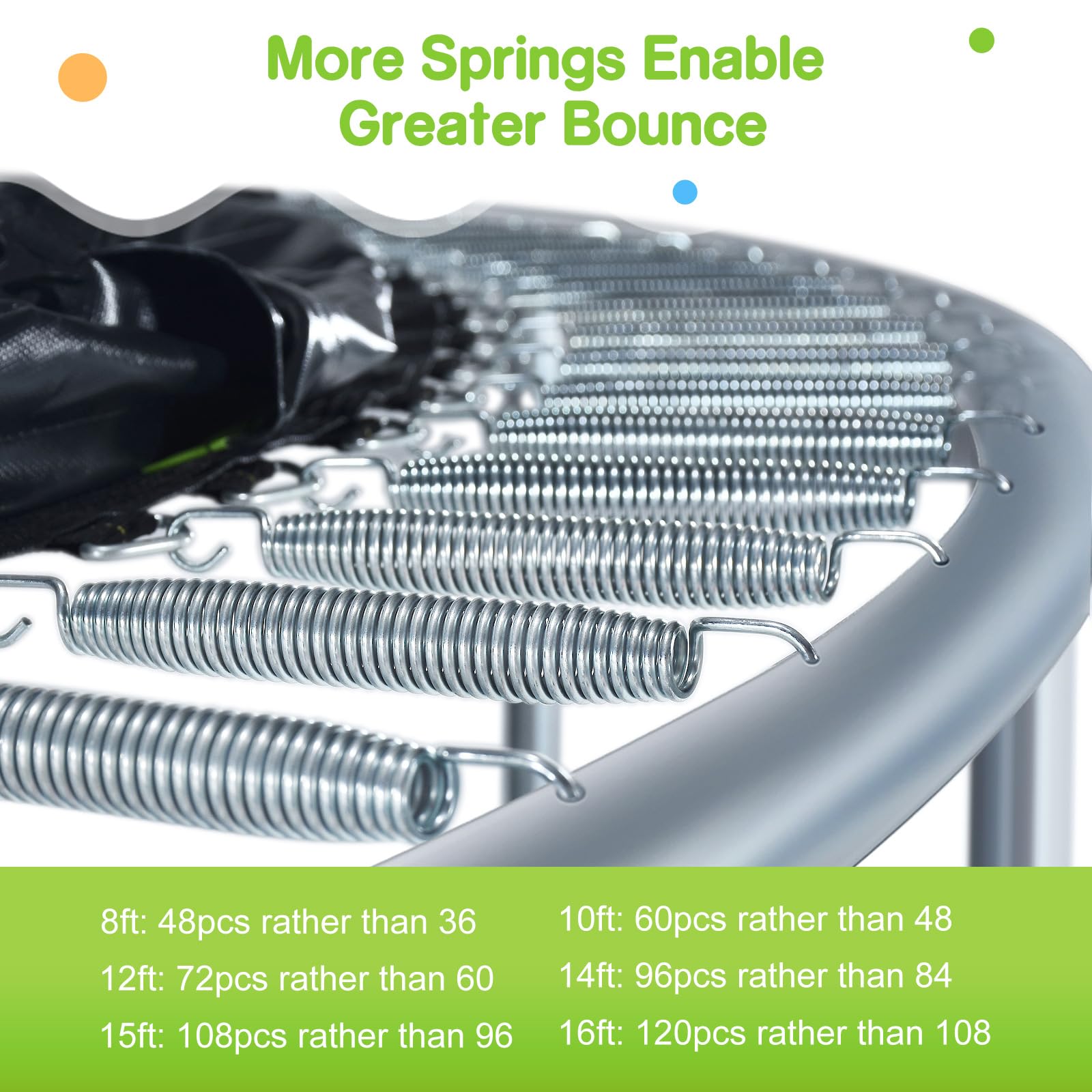 - 【More Springs & Impressive Bounce】Springs are the heart of a trampoline. Zupapa trampolines feature 12 additional hot-dip galvanized springs, delivering an exceptional bounce (7-inch for 12/14/15/16FT). Perfect for both kids and adults.