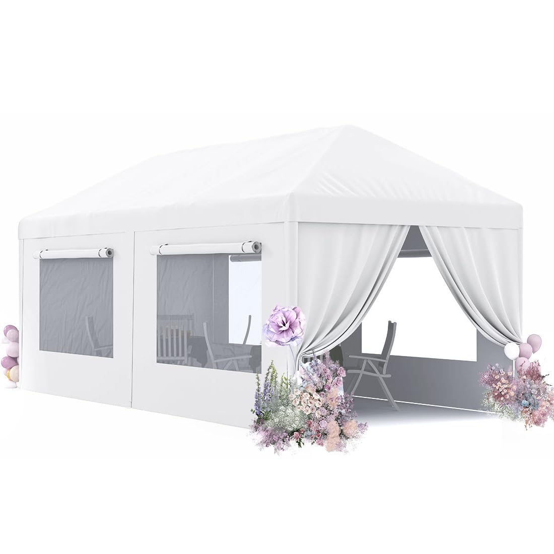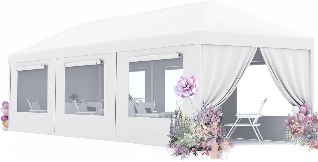 Quictent 10x20 Heavy Duty Party Tent with 4 Removable Mesh Windows & Ventilation - Waterproof Outdoor Canopy Tent for Weddings, Backyard Events, Shelter, UV Protection (White)