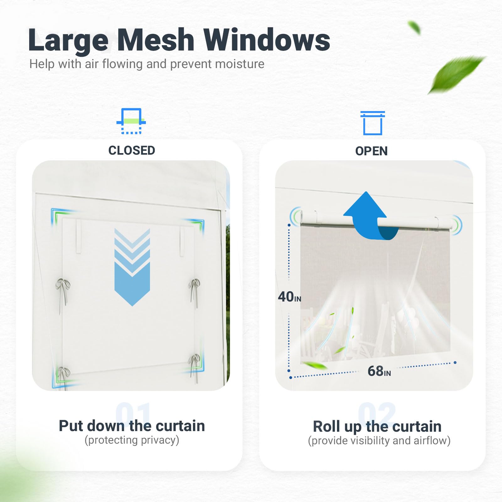 - ✅【MESH WINDOW SIDEWALL】The sidewall have 4 Mesh Windows & Window Covers, which can be used at any time according to the seasonal climate, keep the summer ventilated and warm in winter, create a perfect space for your party at anytime.
