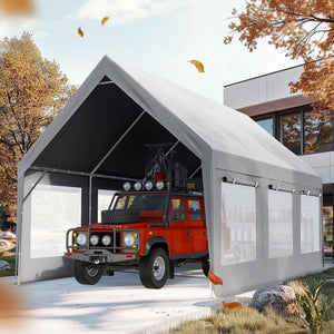 Quictent Heavy Duty 12x20 ft Carport Canopy with High Peak and Ventilation Window Sidewalls, Storage Shed for RV/Truck/Boat Outdoor Party Tent for Wedding - Gray