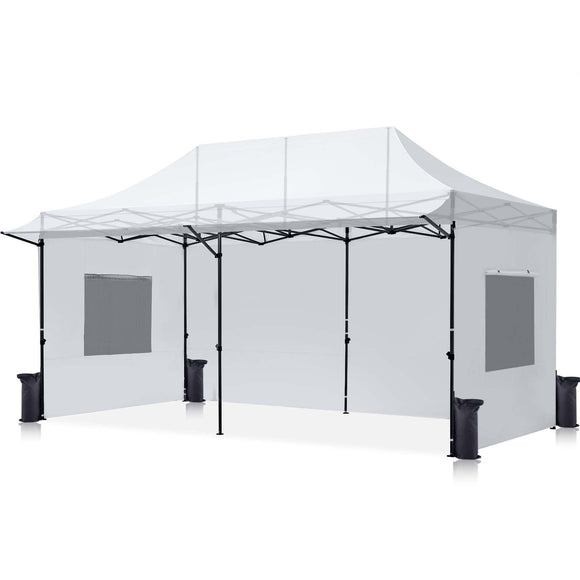 Quictent 10'x20' Heavy Duty Pop up Canopy Tent with Sidewalls, Easy up Commercial Gazebo with Full Truss & Pyramid Structure for Sun, Wind and Rain Protection for Outdoor Fairs and Events White