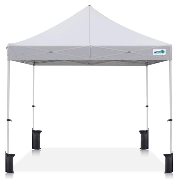 Quictent 10'x10' Portable Pop up Canopy Tent, Easy up Commercial Gazebo Canopies for Sun & Rain Protection, Includes Sand Bags for Outdoor Events, Parties, Markets, Vendors (White, No Sidewall)
