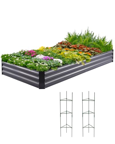 Quictent Galvanized Raised Garden Bed 8x4x1 Ft Metal Planter Box for Vegetables Bottomless for Backyard, 2 Tomato Cages Included, Dark Grey