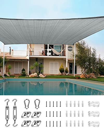 Quictent 20x16ft Rectangular Sun Shade Sail 185G HDPE Canopy 98% UV Block Outdoor Patio Garden Commercial Deck with Hardware Kit (Gray)
