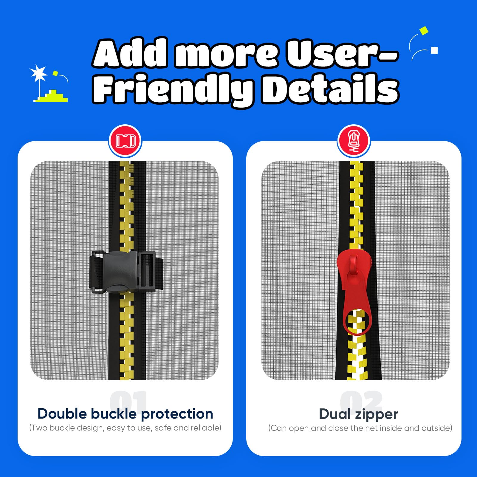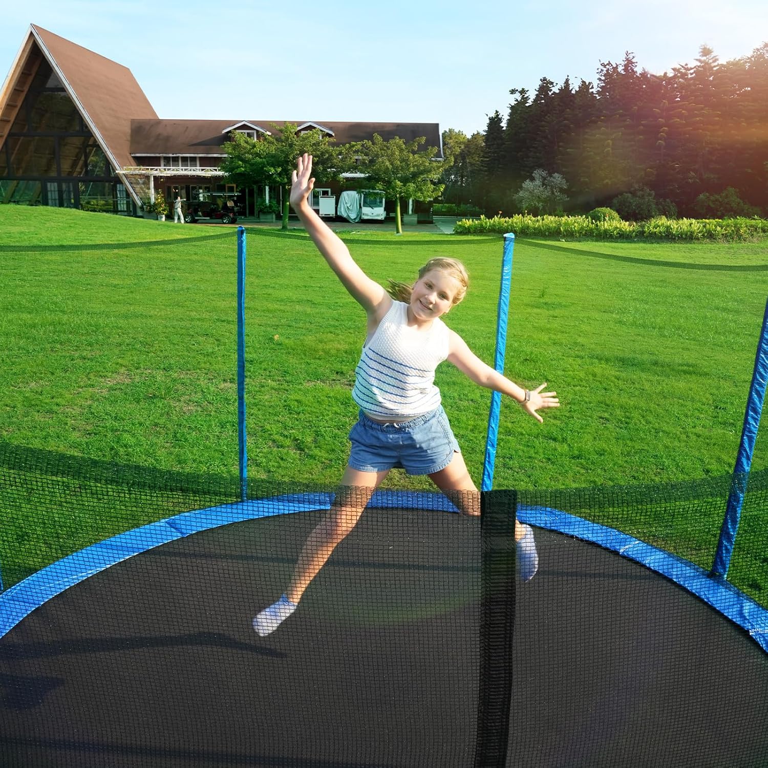- 410lbs Capacity: Built with thickened, reinforced steel for maximum durability, supporting up to 410 lbs. Ideal for both kids and adults jumping together.