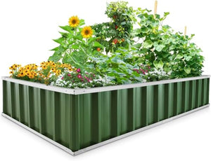 KING BIRD Raised Garden Bed 68"x 36"x 12" Galvanized Steel Metal Outdoor Garden Planter Box Kit with 2 Pairs of Gloves (Green)