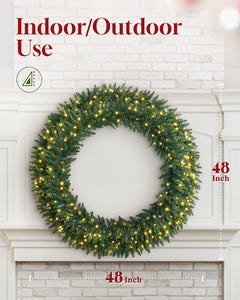 OasisCraft 48" Large Artificial Pre-Lit Fir Christmas Wreath with 200 LED Lights, 540 PVC Branch Tips, Holiday Accent Decoration for Door